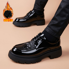 德比鞋男鞋冬季英伦风大头皮鞋青少年增高休闲马丁靴加绒保暖棉鞋