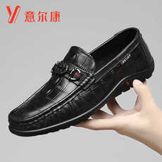 意尔康男鞋鳄鱼纹豆豆鞋真皮男士春夏季透气软底一脚蹬驾车休闲鞋