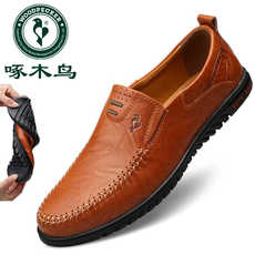 啄木鸟男鞋秋季新款皮鞋男士真皮豆豆鞋男软皮软底驾车鞋夏季透气