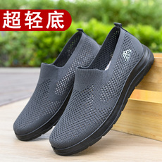 夏季网面透气男鞋舒适软底一脚蹬男士休闲飞织鞋防滑耐磨洞洞鞋子
