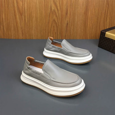 乐福鞋男夏季真皮透气一脚蹬男鞋潮流厚底轻便休闲鞋男士懒人板鞋