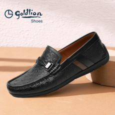 金利来男鞋夏季新款鸵鸟皮时尚休闲鞋一脚蹬豆豆鞋柔软轻便透气