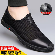 2025夏季单鞋真皮鹿皮透气薄底单层牛皮男鞋软皮软底男士休闲皮鞋