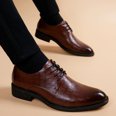 小皮鞋男夏季透气真皮棕色商务正装英伦风韩版潮流软底内增高男鞋