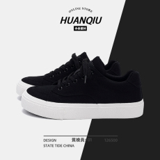 厚底帆布鞋男士休闲黑色鞋子男鞋 ins冬季新款情侣女板鞋美式高街
