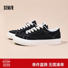 森马男鞋2025新款冬季运动休闲低帮板鞋青少年厚底增高黑色帆布鞋