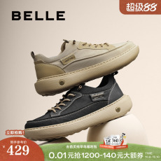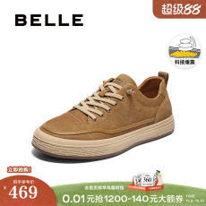 百丽男鞋免系带复古休闲鞋子春季板鞋运动鞋男士工装皮鞋8EY01AM4