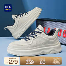 HLA/海澜之家男鞋新款秋季休闲系带舒适增高板鞋透气男士小白鞋