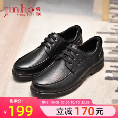 金猴软面男鞋春季商务休闲皮鞋真皮荔枝纹办公室系带上班通勤鞋