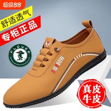 100%全牛皮Plover新款男鞋2024男士真皮运动休闲透气软底驾车鞋男