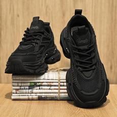 椰子男鞋秋季网面透气网鞋男士运动休闲跑步黑色厚底增高老爹潮鞋