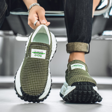 男鞋秋季透气厚底防滑一脚蹬老北京布鞋休闲运动绿色帆布老爹潮鞋