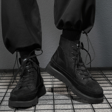 2023秋季新款拼色马丁靴帆布系带增高厚底小众潮流欧美风高帮男鞋