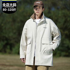 大码春秋季中长款冲锋衣外套男肥佬夹克宽松加肥大码胖子立领风衣