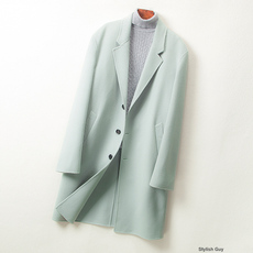 羊绒大衣中长款男装秋冬新款双排扣枪驳领双面呢过膝羊毛风衣外套