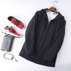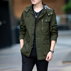 连帽风衣外套男中长款男士夹克秋冬男装2024新款纯棉加绒保暖上衣