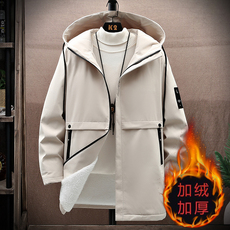 加绒加厚男士外套秋冬季中长款风衣潮流韩版夹克休闲宽松大衣褂子