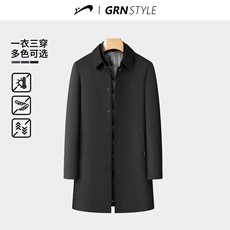 啄木鸟中长款羊毛大衣男士风衣秋冬季加厚羽绒内胆西装领毛呢外套