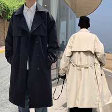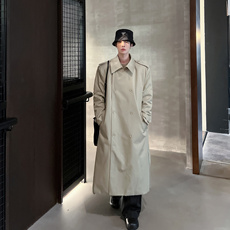 港风双排扣长款过膝风衣男春秋加棉大衣宽松大码上衣中长款外套潮