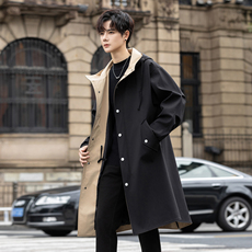 2025新品中长款风衣男士连帽过膝外套帅气薄款披风春秋款大码上衣