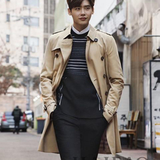 明星同款李钟硕秋季新款韩版休闲男中长款风衣双排扣英伦修身外套