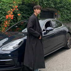 春季中国风男装棉麻衬衣中长款盘扣风衣外套男士唐装中式立领衬衫