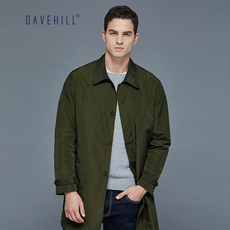 davehill大卫山男装风衣外套中长款系扣翻领商务休闲宽松韩44