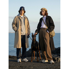 高林凡 垫肩韩版风衣男女中长款宽松潮流过膝休闲大衣夹克外套