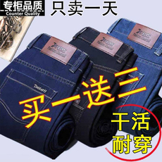 弹力牛仔裤男士大码宽松直筒休闲长裤男秋冬季加绒加厚耐磨工作裤