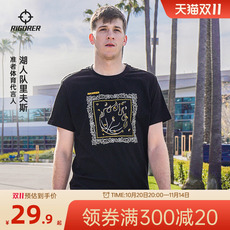 NICEID 耐撕日落街头美式短袖T恤圆领运动篮球纯棉宽松小领口男女