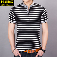 条纹短袖t恤包邮男士青年纯棉翻领夏季新款体恤衫韩版潮男装上衣