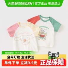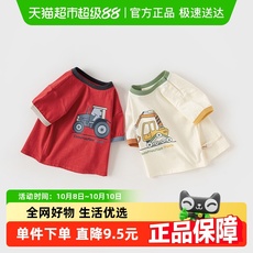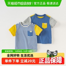 包邮戴维贝拉儿童短袖2025夏装男童宝宝T恤卡通洋气休闲拼色上衣