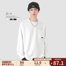 GWIT 美式重磅宽松春秋纯棉内搭口袋体恤打底衫圆领纯色长袖T恤男