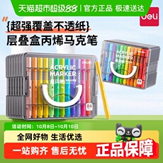 得力丙烯马克笔丙烯笔不易透纸可水洗24色学生儿童48色小学生美术DIY60色彩色画笔水彩笔叠色