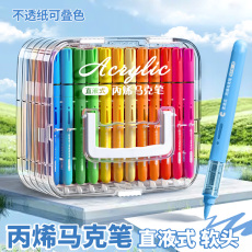 丙烯马克笔直液式不透色小学生可叠色美术专用幼儿园画笔儿童可水洗水彩笔48色绘画24彩色笔炳稀笔芯软头60