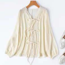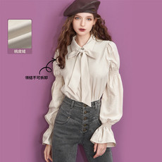 2024女春秋款法式蝴蝶结复古衬衫百搭白色小众设计感别致长袖衬衣