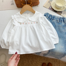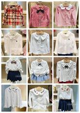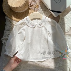 中小童打底衫日系miki春秋男女宝白色衬衣长袖T恤纯棉刺绣翻领衫