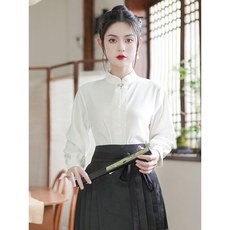 马面裙搭配的上衣春秋日常通勤国风白衬衫新中式立领对襟长袖衬衣