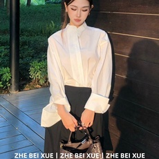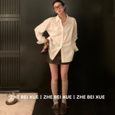 白色衬衫女秋冬新款港味chic长袖衬衣宽松今年流行的漂亮小衫上衣