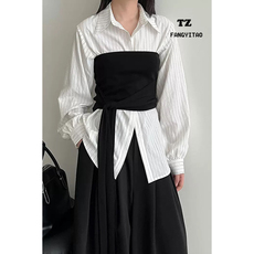 韩版设计感修身显瘦长袖白衬衫女2025早秋气质衬衣系带抹胸两件套