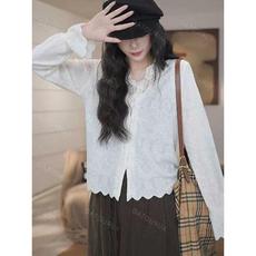 春天新款女装衬衫长袖全棉蕾丝纯色系甜美日系小清新白衬衫女上衣