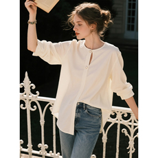 白色圆领长袖衬衫女2025年秋季新款职业衬衣巨好看的早秋穿搭上衣