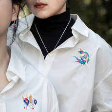 王的手创 山海经白衬衫手工刺绣diy材料包长袖衬衣女装潮流原创