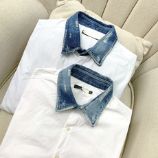 太**茑柜单/个性牛仔衣领~纯棉时尚都市白衬衣长袖衬衫四季男女穿
