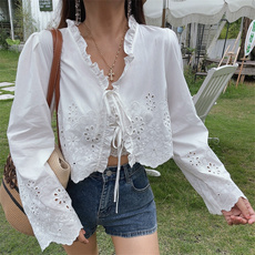 Avocadong 不想穿毛衣的一件重工刺绣白色长袖衬衫女气质小衫上衣