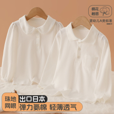 女童春秋白色衬衫宝宝纯棉简约polo长袖校服白衬衫儿童翻领打底衫