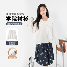 2025秋季新款女童娃娃领长袖衬衫上衣中大童洋气儿童纯棉白色衬衣