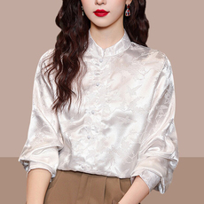 复古白色长袖衬衫女春夏新款中式缎面衬衣搭配马面裙穿的国风上衣