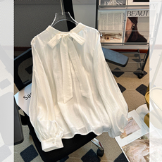 2024年春季白色蝴蝶结飘带衬衫女长袖雪纺超仙洋气衬衣很仙的上衣