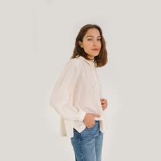 Sacrecoeur棉质纹理米白色女式长袖衬衫细微的织纹肌理增添层次感